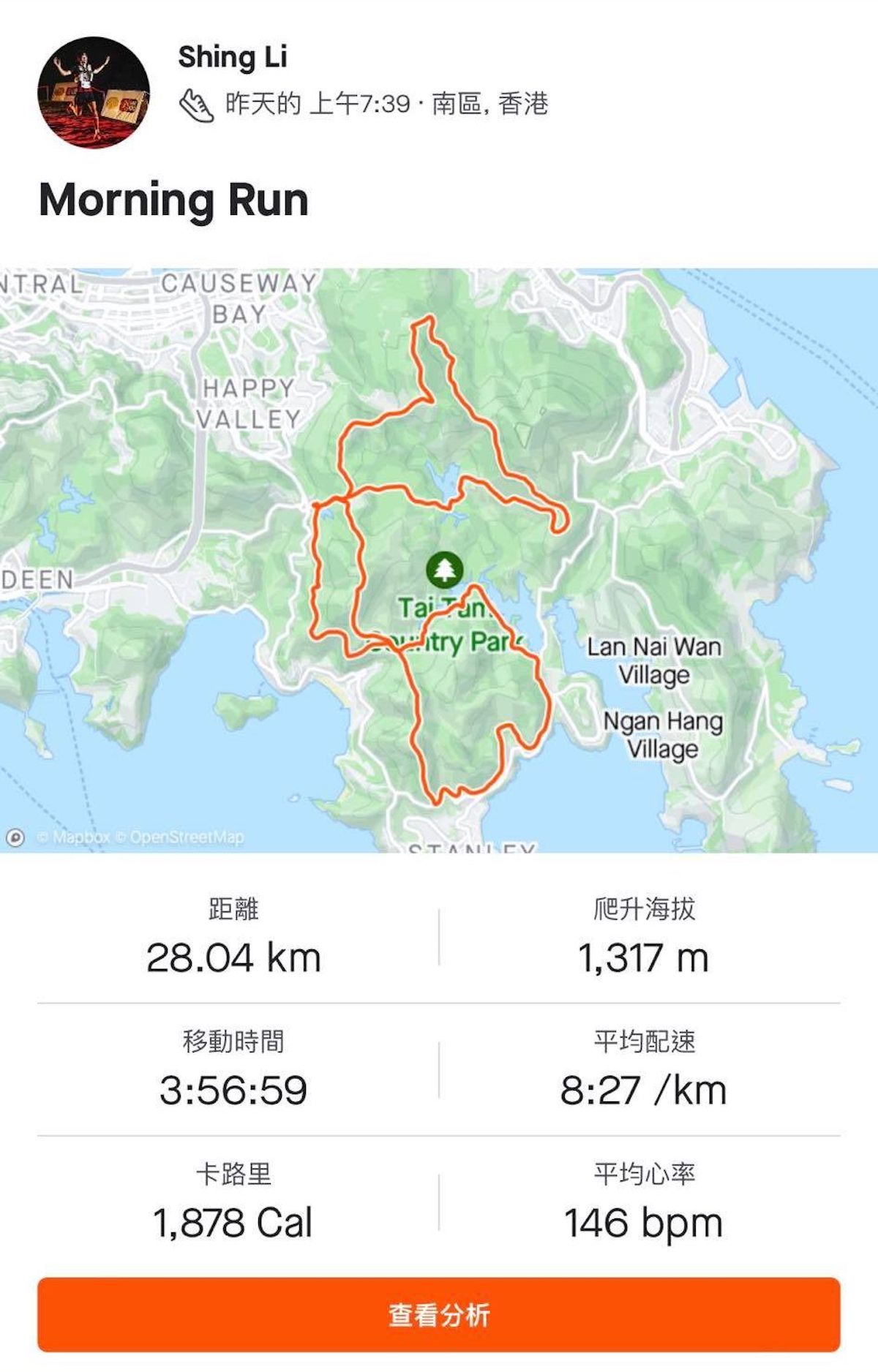 28km,爬升1300m,4小時1分鐘。對於跑量咁少既我,成績相當滿意 ????